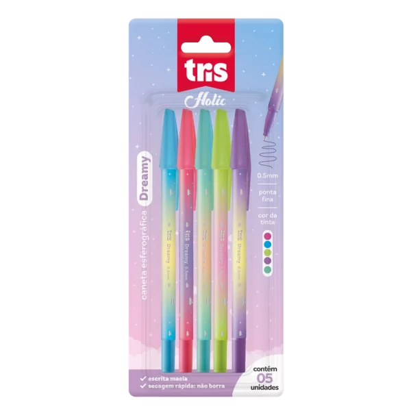 CONTÉM: 1 KIT COM 5 CANETAS ESFEROGRÁFICAS HOLIC.