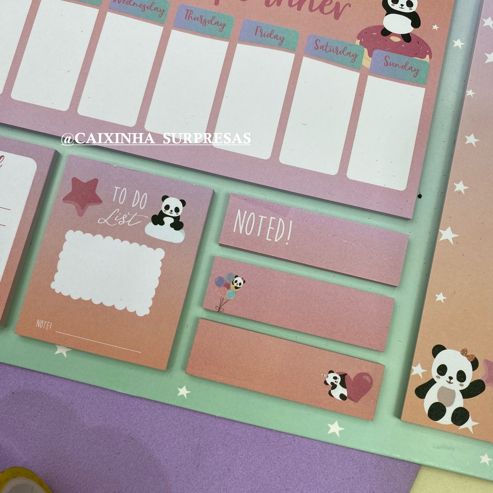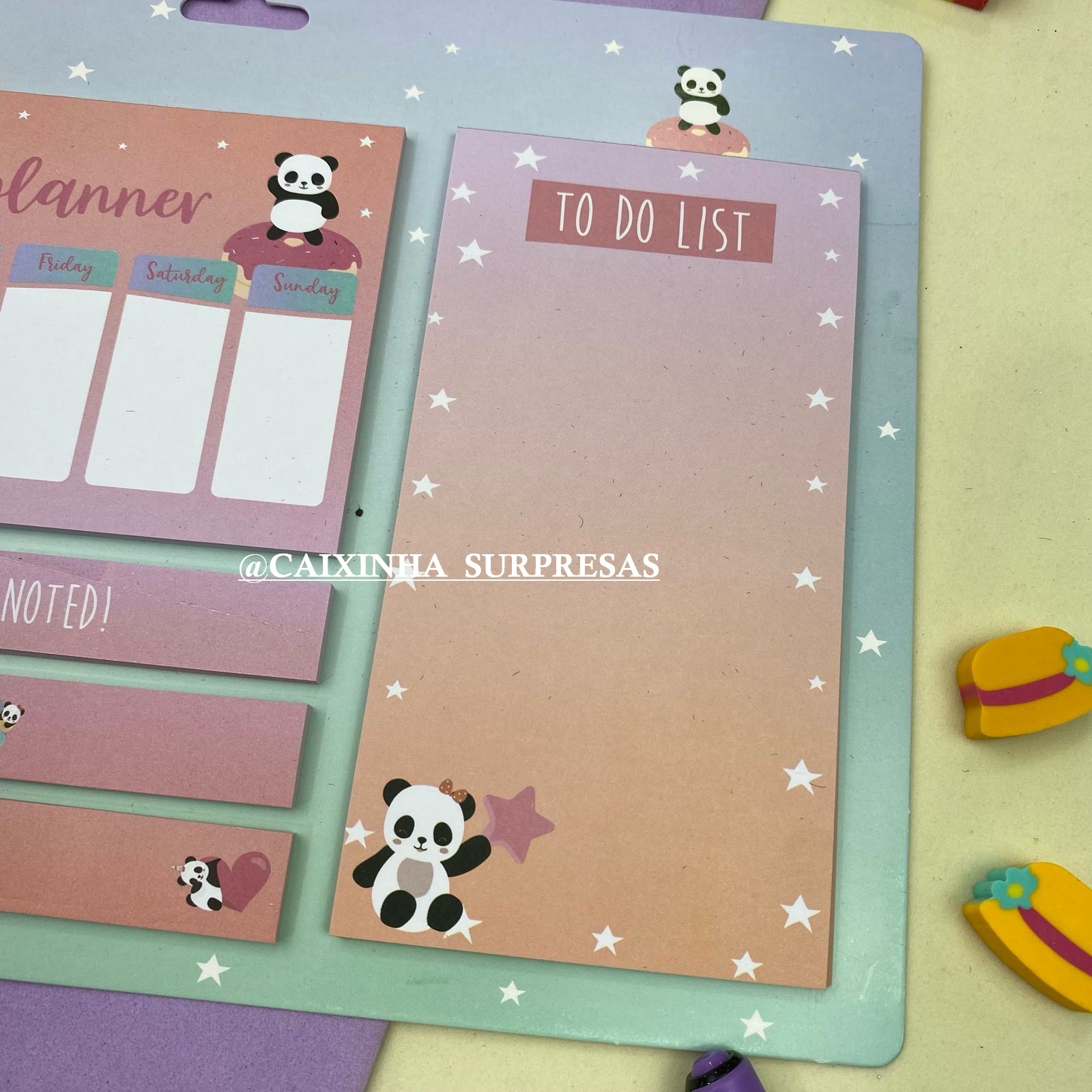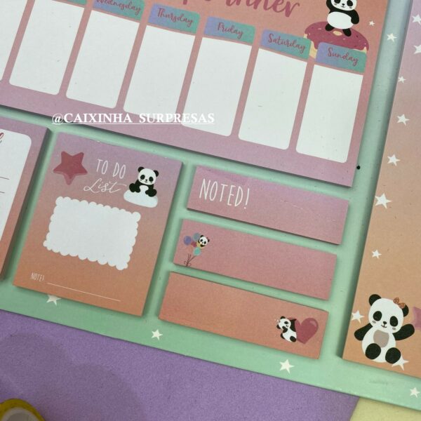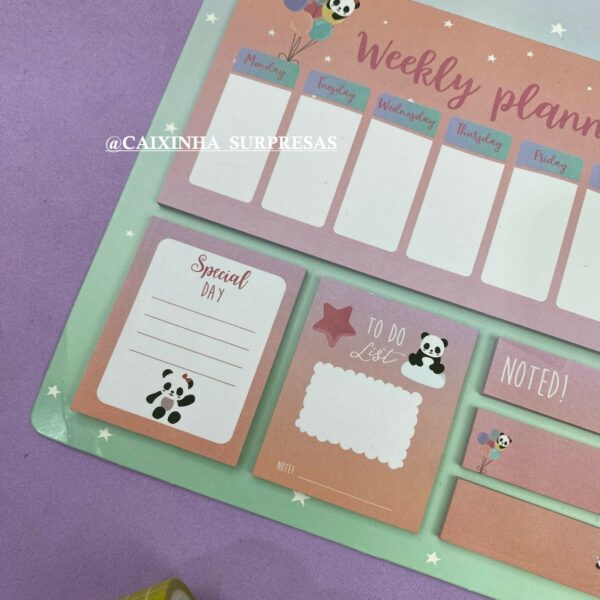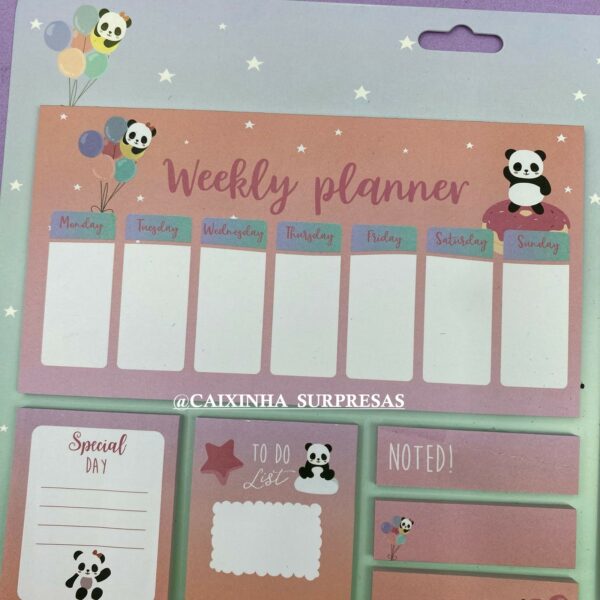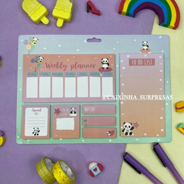 CONTÉM: 1 BLOCO ORGANIZADOR SEMANAL, 1 BLOCO DE ANOTAÇÕES, 2 BLOCOS ADESIVOS, 3 MARCADORES DE PÁGINAS ADESIVAS.