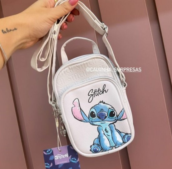 CONTÉM: 1 BOLSA DE OMBRO DO STITCH, 1 ALÇA REGULÁVEL, 2 REPARTIÇÕES (1 GRANDE, 1 FRONTAL PEQUENA) – IMPORTADO.
