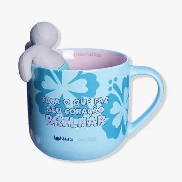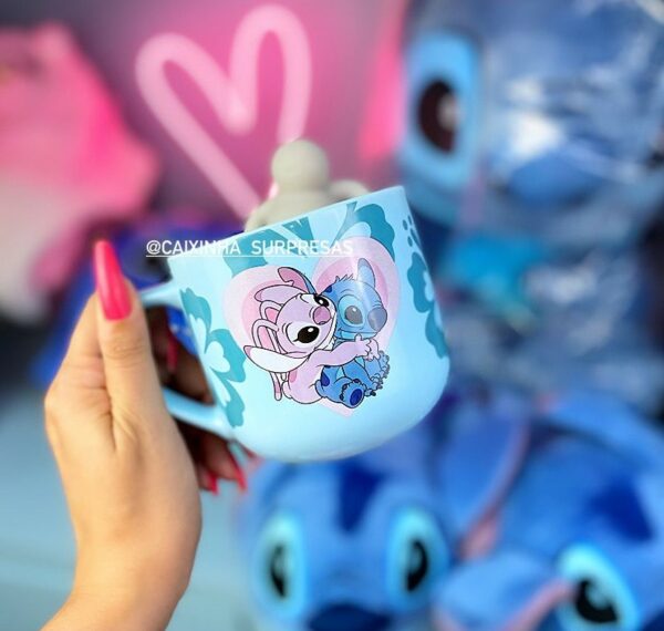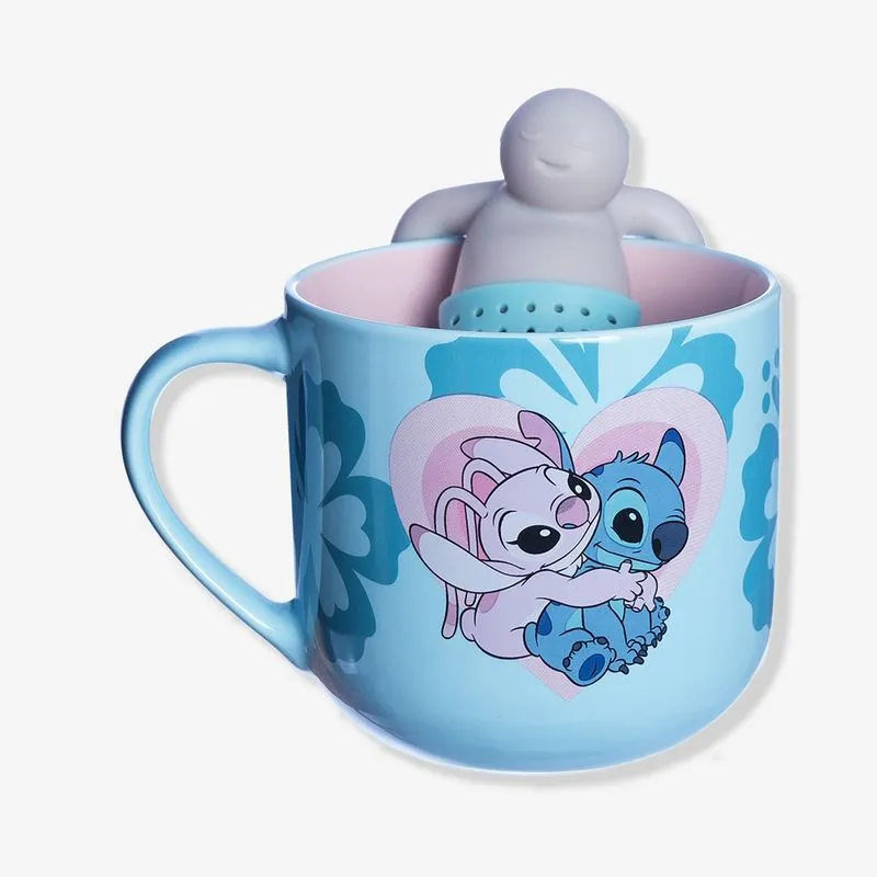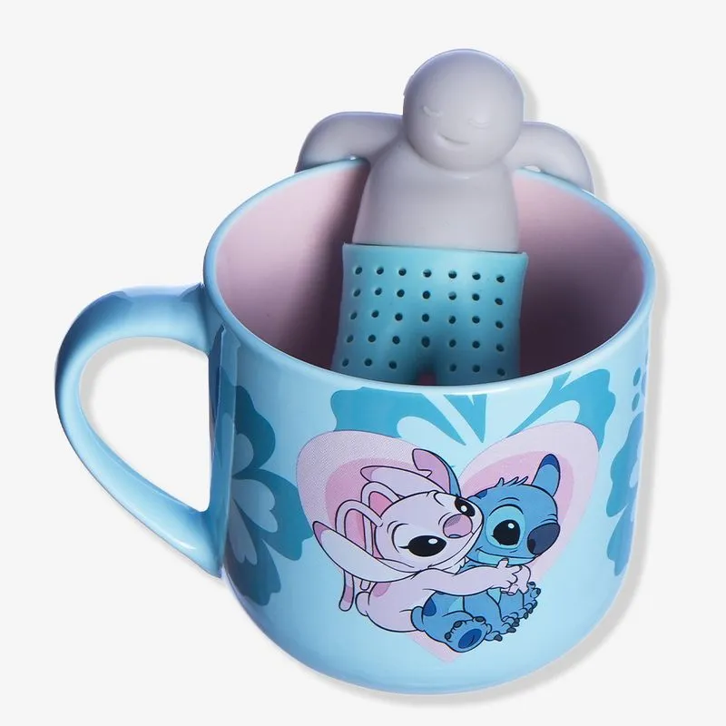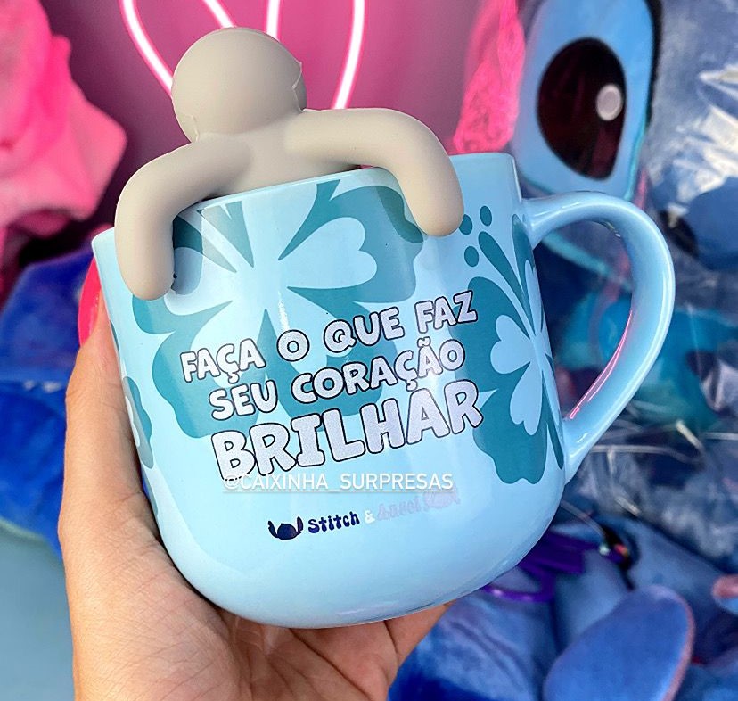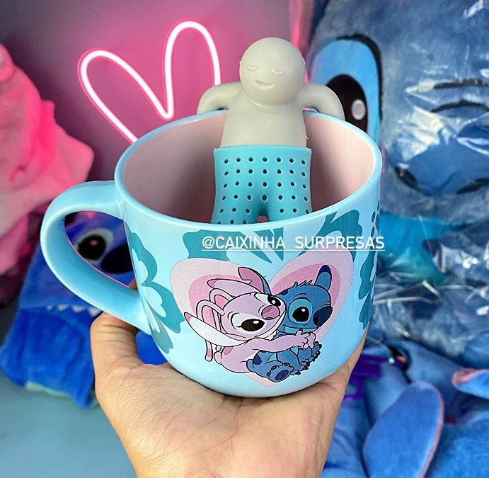 CONTÉM: 1 CANECA DO STITCH E DA ANGEL, 1 INFUSOR DE CHÁ REMOVÍVEL.