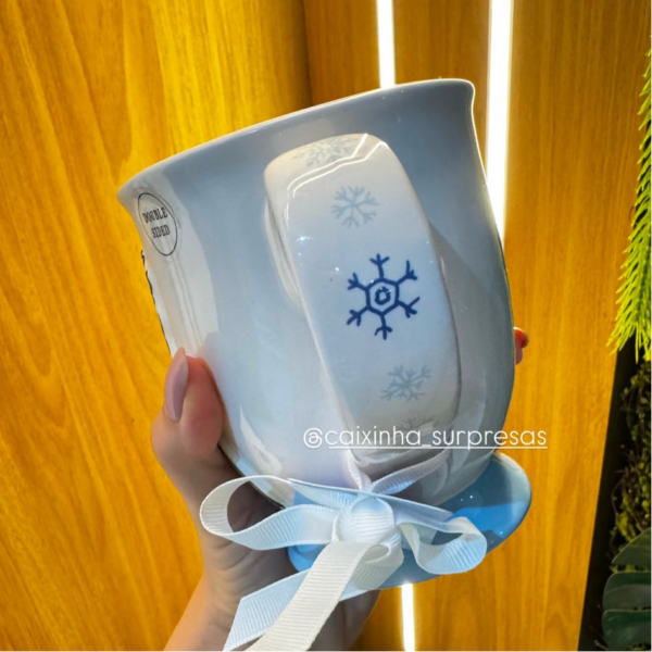 - DETALHES DE FLOCOS DE NEVE NA ALÇA DA CANECA;
