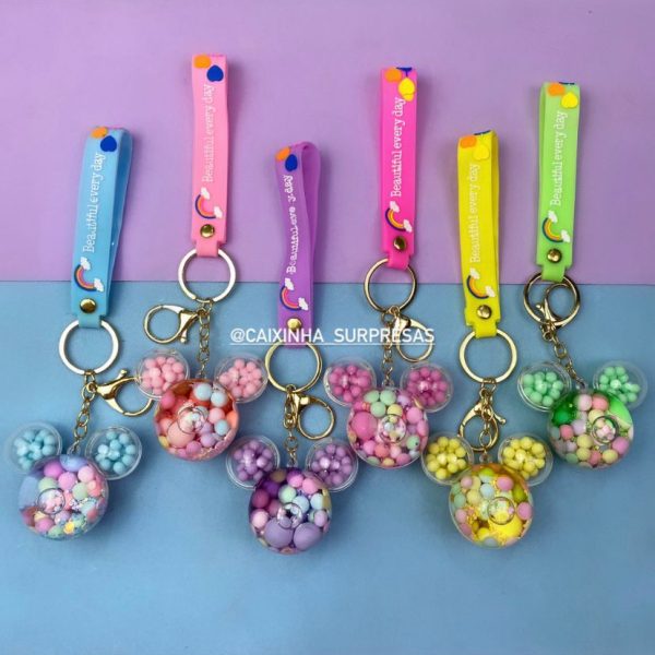 CONTÉM: 1 CHAVEIRO DO MICKEY TRANSPARENTE EM ACRÍLICO, BOLHAS DENTRO.