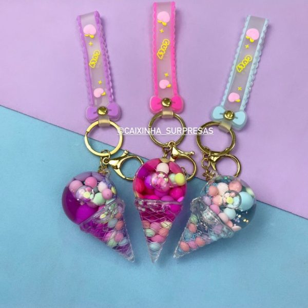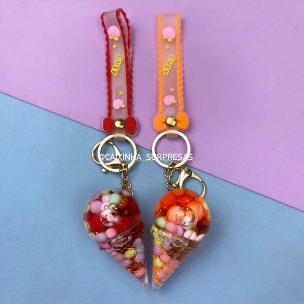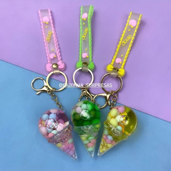 CONTÉM: 1 CHAVEIRO DO SORVETE TRANSPARENTE EM ACRÍLICO, BOLHAS DENTRO.