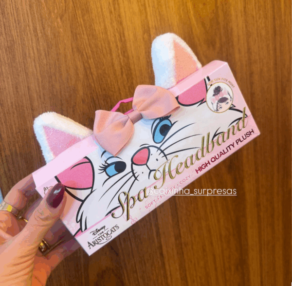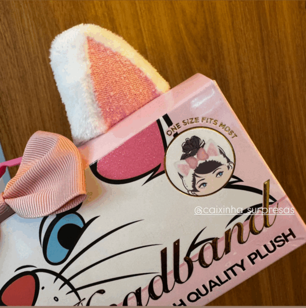 POSSUI: FAIXA EM PELUCIA COM ORELHAS DE GATO E UM LACINHO.