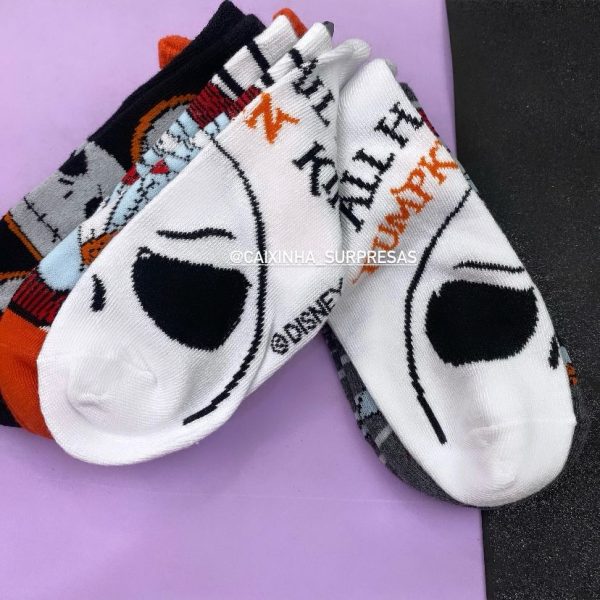 CONTÉM: 05 PARES, ESTAMPAS VARIADAS DO JACK SKELLINGTON– IMPORTADO