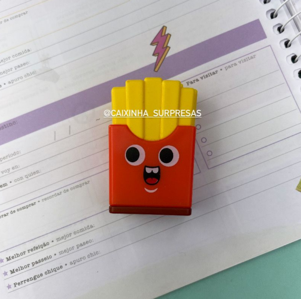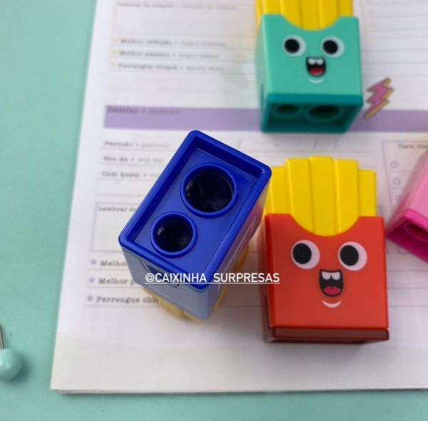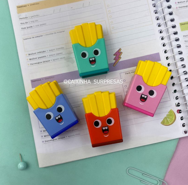 CONTÉM: 1 APONTADOR DUPLO E 1 BORRACHA EM FORMA DE BATATA FRITA.