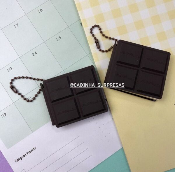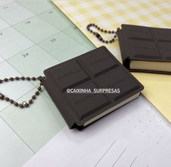 CONTÉM: 1 KIT COM 2 MÍNIS CADERNINHOS DE CHOCOLATE COM CAPIVARA, 2 MÍNIS ARGOLINHAS PARA TORNAR CHAVEIRO.