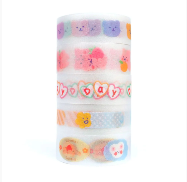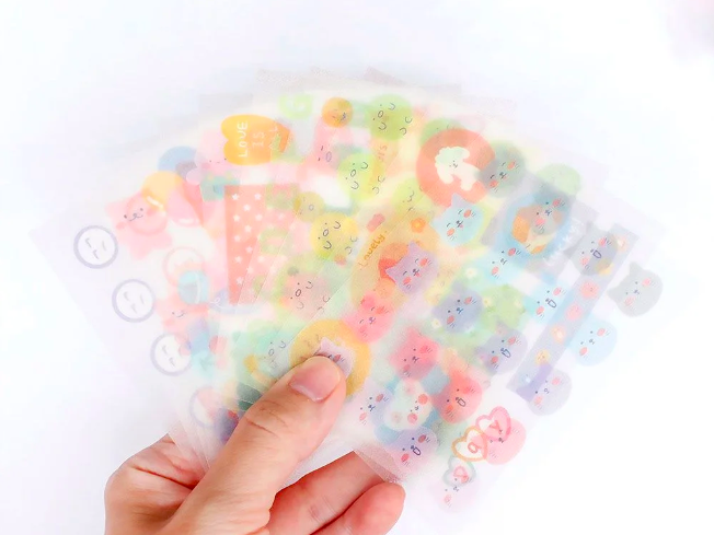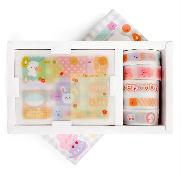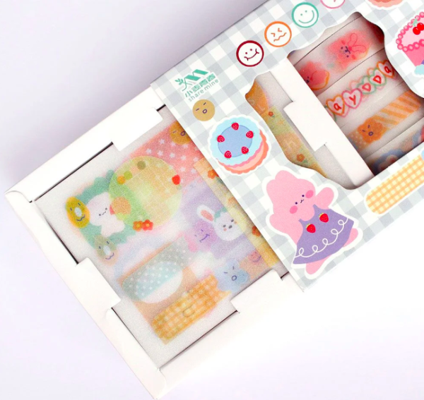 CONTÉM: 9 FOLHAS ADESIVAS, 5 FITAS WASHI TAPES, TODAS PERSONALIZADAS DE BICHINHOS FOFOS.