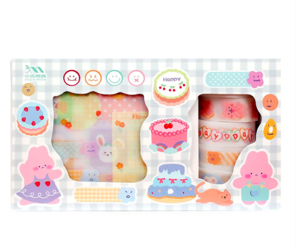 KIT ADESIVOS E FITA WASHI TAPE BICHINHOS