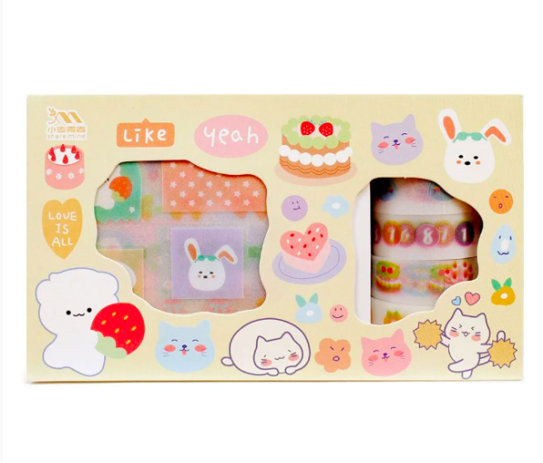 KIT ADESIVOS E FITA WASHI TAPE GATINHO