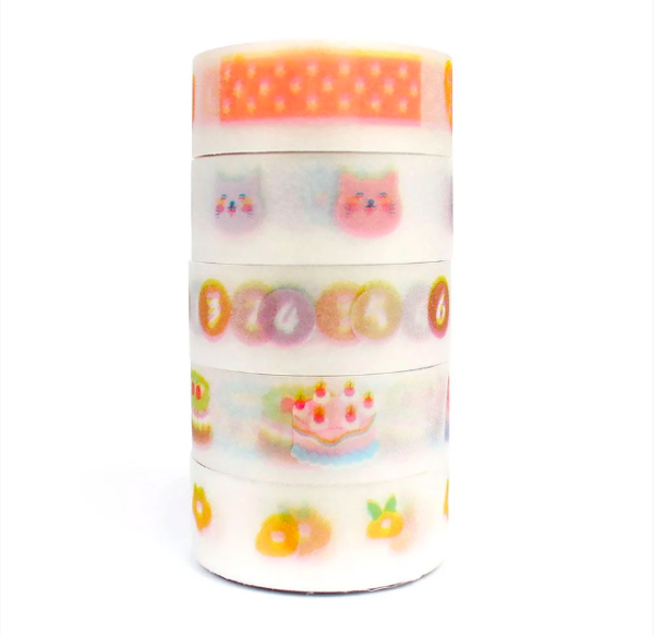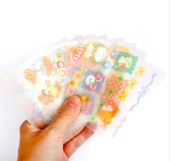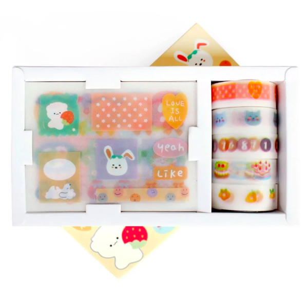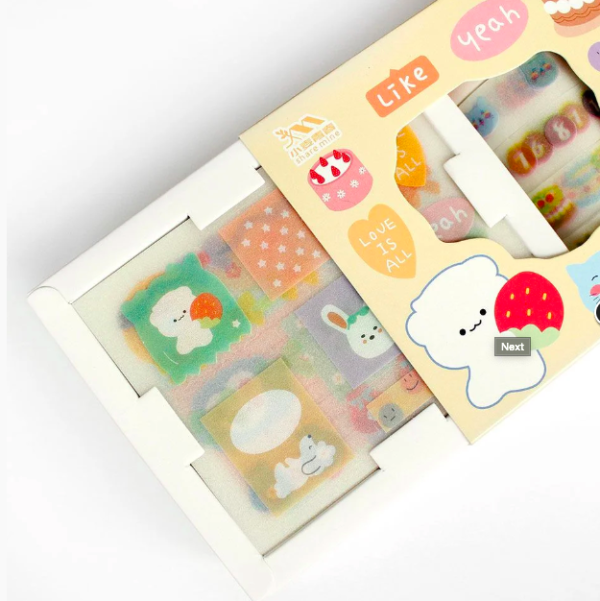 CONTÉM: 9 FOLHAS ADESIVAS, 5 FITAS WASHI TAPES, TODAS PERSONALIZADAS DE BICHINHOS FOFOS.