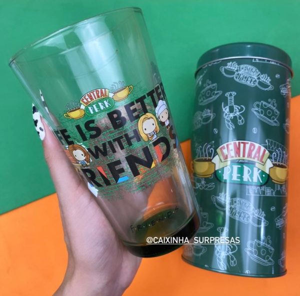 KIT COPO DE VIDRO COM COFRE DE METAL CENTRAL PERK – FRIENDS