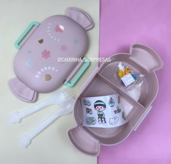 CONTÉM: 1 MARMITA DE BALINHAS, 2 TALHERES, ADESIVOS.
