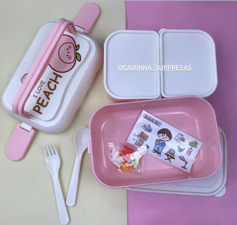 POSSUI: 2 POTES PEQUENOS COM TAMPA, 1 POTE GRANDE COM TAMPA, 1 TAMPA COM ALÇA, 1 GARFINHO, 1 COLHERZINHA, 1 CARTELA DE ADESIVOS.
