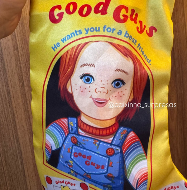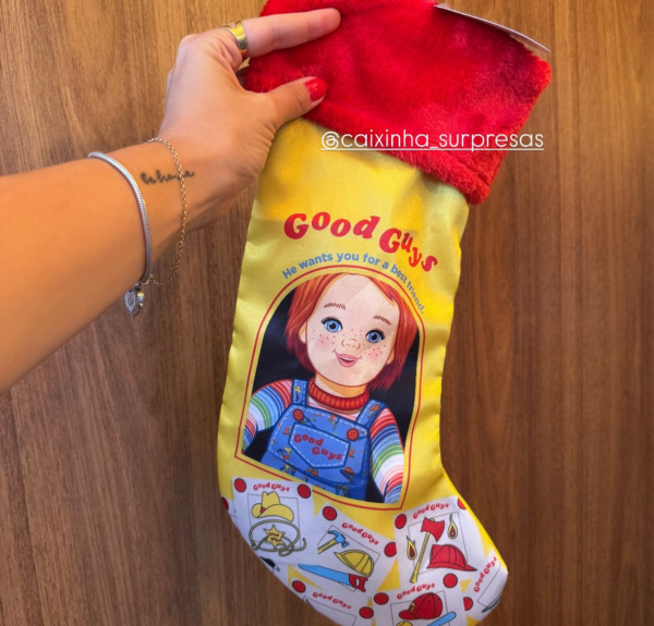 CONTÉM: 1 MEIA DECORATIVA NATALINA CHUCKY, PARA PORTAS E/OU LAREIRAS.