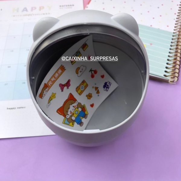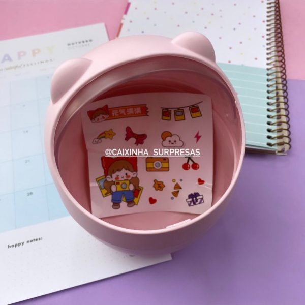 CONTÉM: PORTA OBJETOS COM 1 DIVISÓRIA E 1 CARTELA DE ADESIVO DIVERSIFICADO.