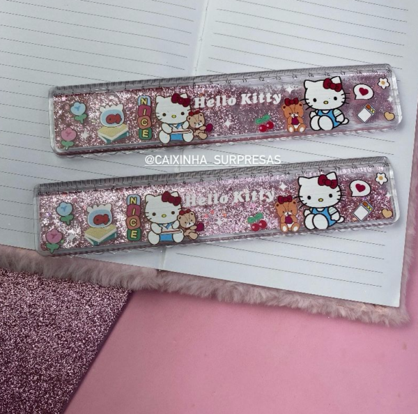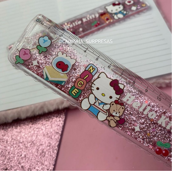 CONTÉM: 1 RÉGUA DA HELLO KITTY COM GLITTER LÍQUIDO.